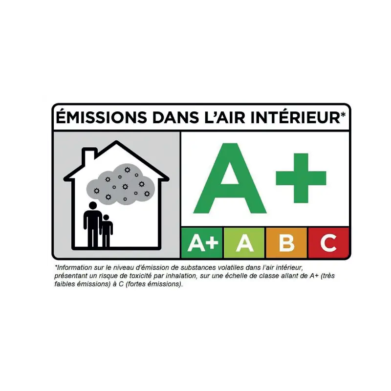 Ce label répond aux exigences de l’étiquetage des produits de construction ou revêtement mural vous informe sur le niveau d’émission de substances volatiles toxiques dans l’air intérieur.